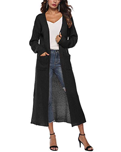 Cardigan Uomo Invernale Donna Lungo Elegante con Cappuccio Manica Lunga Vintage Stampato Modello Hippie Moda Casual Calda Knit Cardigan Hoodies Cappotto Outwear Top Nero S