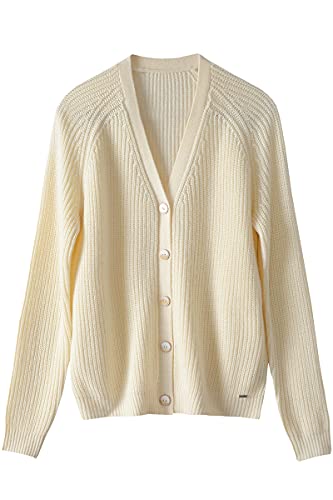 织礼 Cardigan maglione da donna con scollo a V, oversize in maglia grossa chiusura con bottoni in lana merinos, bianco, M