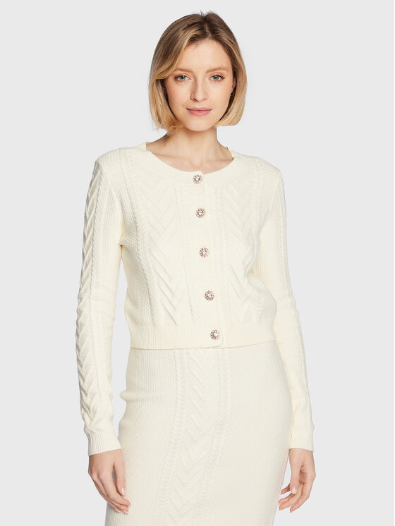 Cardigan W3RR28 Z2V42 Écru Slim Fit