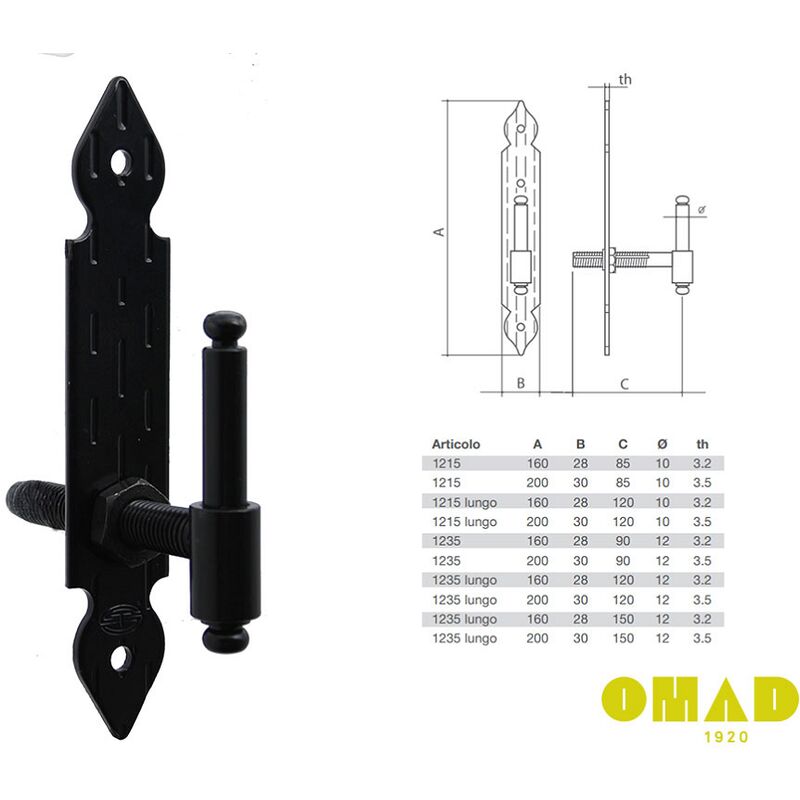 Cardine per persiane regolabile marca OMAD Caratteristiche tecniche: -Materiale Acciaio -Finitura VN - Cataforesi e verniciatura a polveri colore nero -Dimensioni: mm.160x28x21h -Diametro occhio centrale:10 mm. Disponibile in varie finiture La confezione comprende: -nr 01 Cardine Perché scegliere OMAD? 1920 - Nasce Omadfondata da Andrea Daccò a Conegliano, in provincia di Treviso. La suaproduzione viene influenzata dal talento meccanico del Fondatore, di originelombarda, dalla sua impronta industriale e dalle forme ispirate all'artearchitettonica di Venezia. 1976 - Omad comincia la seconda fase della sua attività in una nuova e modernasede a Castello Roganzuolo di San Fior. Una profonda trasformazione tecnologica e meccanica, nuovi sviluppi commercialie apertura ai mercati esteri. 1994 - Omad amplia ulteriormente la propria sede con la costruzione el'avviamento di una seconda area produttiva dove viene introdotto un efficienteimpianto di cataforesi e verniciatura a polveri