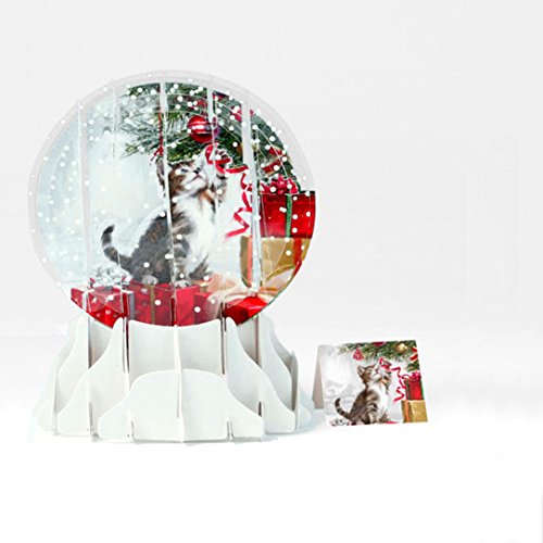 3D Pop Up Cards Carte 3D pop-up Design boule à neige de Noël avec chaton