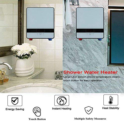 Caredy Riscaldatore di Acqua istantaneo, 220V 6500W LED Tankless Riscaldatore di Acqua Calda istantaneo Riscaldatore per casa Bagno Doccia + Soffione per Cucina del Bagno