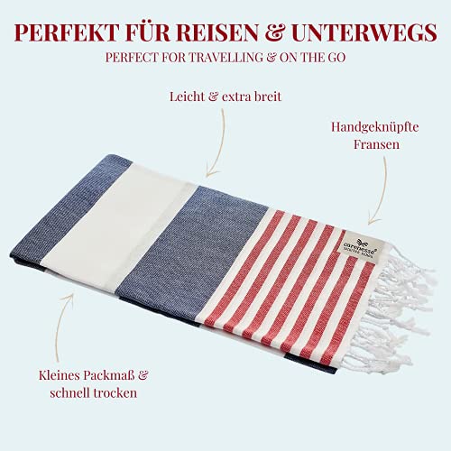 Carenesse Asciugamano di Hammam TOMMY blu strisce rosse bianche, 100 x 180 cm, 100% cotone, aspetto marino, peshtemal, asciugamano sauna, telo da bagno, telo mare, fouta