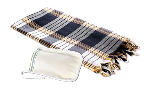 Le varianti dei classici hamam sul set. Involucro panno di cotone e Guanto di peeling per sbucciare tutto il corpo. Ideale come regalo.