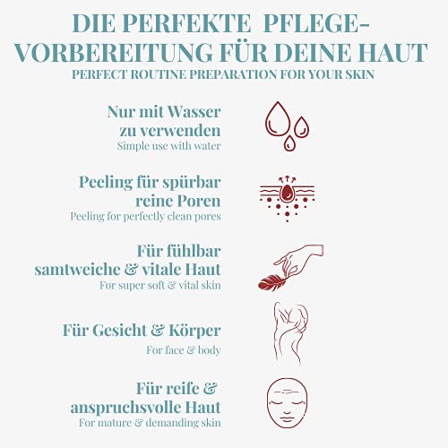 Pulizia delicata e delicata della pelle: risultato setoso e con una notevole pulizia e peeling: pelle vellutata, morbida e liscia, molto ricettiva per le vostre creme e lozioni.