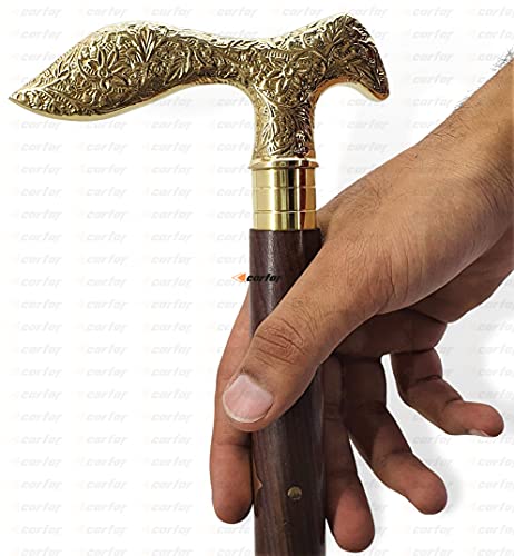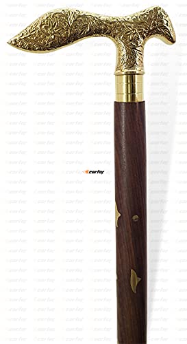 Carfar Handicrafts - Bastone da passeggio a forma di fiore di volpe, realizzato a mano, in ottone massiccio, per uomini e donne, realizzato in legno naturale