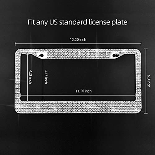 Carfond 7 Row Handcrafted Shining Sparkling Premium Crystal Diamond Stainless Steel Metal License Plate Frame 2 Holes Bonus Matching Screws Caps (Clear crystal)