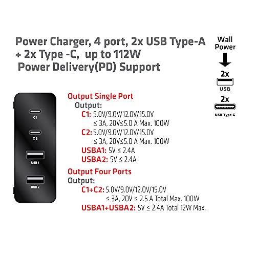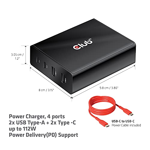 cargador club3d cac-1904 (4 puertos 2x usb type-a + 2x type -c hasta 112w power delivery (pd) support)