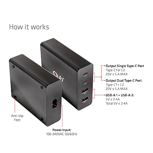 Club 3d cargador cac-1904 (4 puertos 2x usb type-a + 2x type -c hasta 112w power delivery (pd) support)