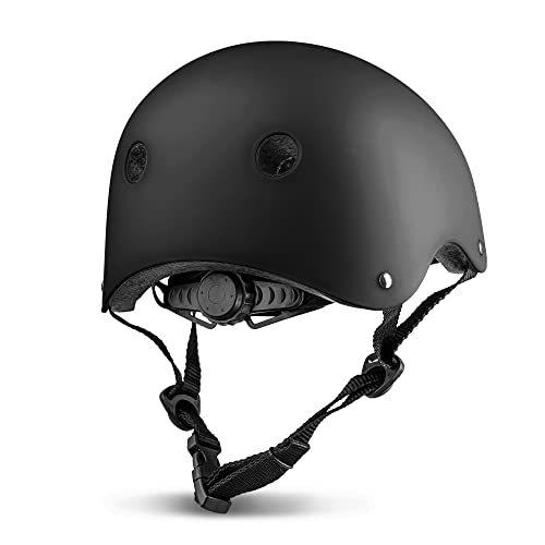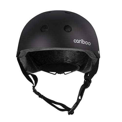 Cariboo Kids casco per giovani, casco classico per bambini per bici, scooter, skateboard, per ragazze e ragazzi, casco da skateboard/bici - regolabile (S (48-52 cm), Nero)