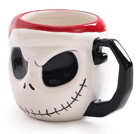 Caribou Living Jack Skellington Tazza in ceramica con testa di Natale 3D, 400 ml, con scritta "The Nightmare Before Christmas", per bevande calde, tè, caffè, cioccolata calda