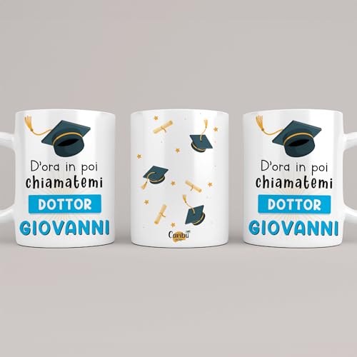 Caribu design Tazza Personalizzata Laurea Uomo - Idea Regalo per Neolaureato/Festa/Tesi Personalizzabile con Nome per Lui - Tocco e Frase Chiamatemi Dottore (Ragazzo)