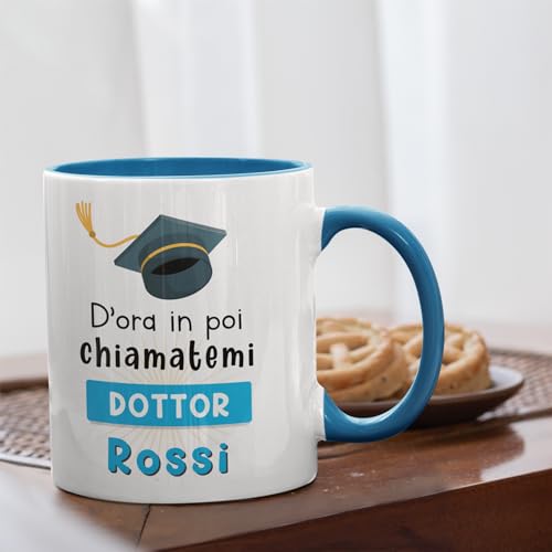 TAZZA PERSONALIZZATA DOTTOR: Questa tazza per neolaureati è personalizzabile con il nome. Fare colazione con questa tazza personalizzata, lo farà svegliare con il buon umore, ricordandogli l'importante traguardo raggiunto. D'ora in poi chiamatermi dottore.