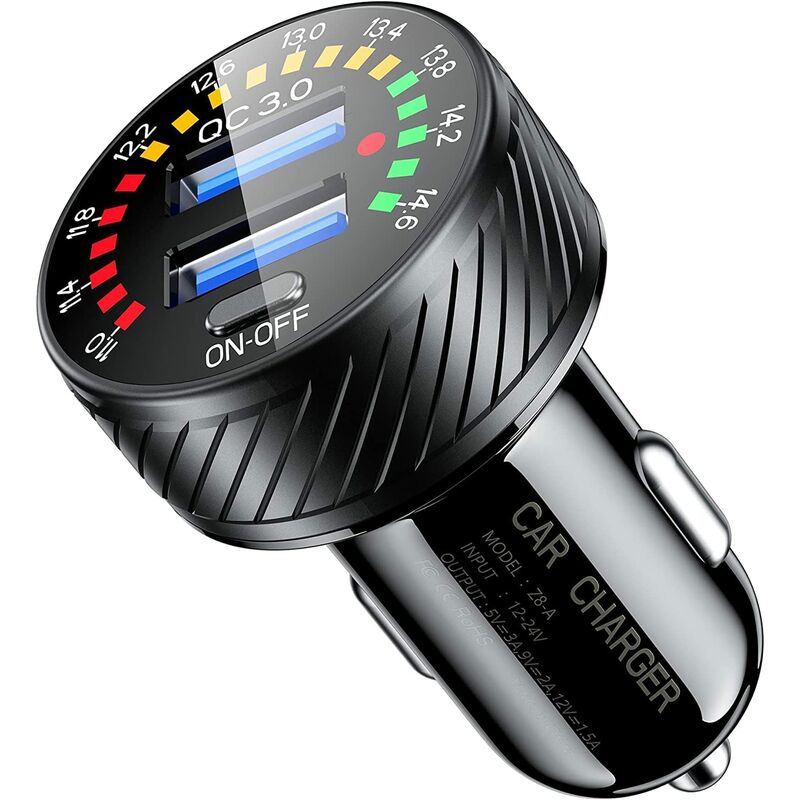Questo caricabatterie per accendisigari per auto è dotato di un voltmetro colorato in grado di monitorare il valore della tensione della batteria dell'auto in tempo reale, facendoti conoscere il livello della batteria dell'auto in qualsiasi momento. Le luci a LED colorate possono anche aiutarti a trovare facilmente la porta di ricarica USB del caricabatteria per auto in un ambiente buio. Con due porte USB QC3.0, il caricabatteria per auto carica rapidamente due dispositivi compatibili contemporaneamente a QC3. 0 velocità, fino a 4 volte più veloce della ricarica convenzionale. Due porte hanno un'uscita totale di 36 W, ciascuna porta 18 W/3 A. Questo caricabatteria USB per auto è retrocompatibile con QC 2.0 e 1.0. Il caricabatteria per auto è realizzato con materiali resistenti alle alte temperature e alle basse temperature, che possono essere utilizzato in un ambiente di lavoro da -20 a 60°C. Smart chip integrato e ha superato una serie di certificazioni di sicurezza, a supporto della