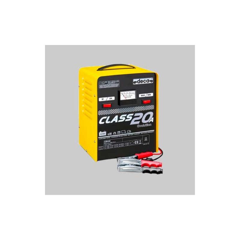 Adatto alla ricarica di batterie al piombo WET con e senza manutenzione, AGM. Regolazione della corrente di carica, protezione termostatica, protezione contro le inversioni di polarit..., protezione contro i corto circuiti alle pinze, arresto manuale della carica. Alimentazione 1Phx230V, potenza 300W, corrente di carica media 12 Amp, capacit... batteria 10-250 Ah. Caricabatteria 'class 20a' tensione di carica 12/24 v DECA Saldatrici e caricabatteria deca