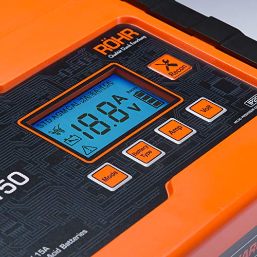 Röhr Caricabatteria per Auto da 15 Amp 12V DFX-150 Intelligente Turbo/Manutenzione con Tecnologia di Manutenzione e Riparazione della Batteria