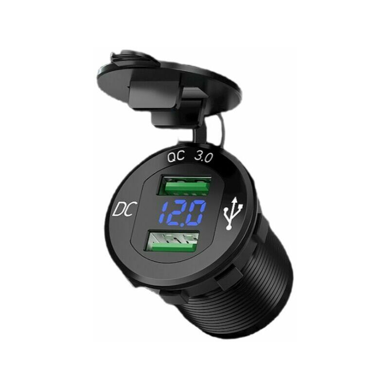 Progettato con due porte USB che supportano QC 3.0, la cui uscita singola massima è di 18 W. Chip Qualcomm ufficiale integrato, rileva in modo intelligente i tuoi dispositivi e carica contemporaneamente 2 dispositivi alla corrente ottimale. Ricarica i dispositivi compatibili fino a 4 volte più velocemente rispetto alla ricarica convenzionale. Questo caricabatteria per auto si basa sul monitor di tensione LED digitale, visualizza lo stato di tensione in tempo reale della batteria del tuo veicolo per prevenire problemi causati dalla bassa tensione, il la luce rossa rende facile e veloce trovare le porte USB al buio o di notte e il display rosso è visibile come alla luce del sole forte. Realizzato in lega di alluminio resistente al calore e all'usura. Certificato da CE e ROHS con sovraccarico, lo Smart IC integrato garantisce sovracorrente e cortocircuito per garantire la sicurezza della ricarica, nel frattempo il circuito non verrà bruciato in caso di cablaggio errato. Grado di