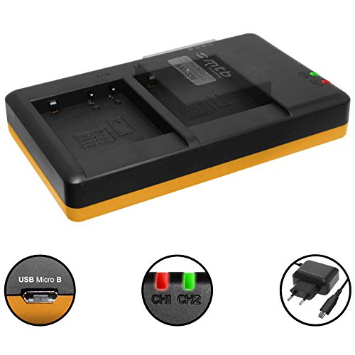 Caricare una o due batterie allo stesso tempo! | Adattatore di alimentazione USB incluso (potenza di uscita consigliata per una velocità di caricamento ottimale: minima 2 amp.) Ideale per il viaggio: Può anche essere utilizzato con una batteria esterna come fonte di alimentazione.