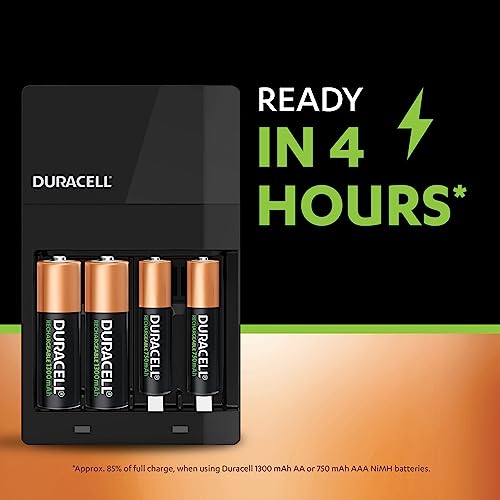 4 batterie AA cariche in 4 ore (circa il 90% della carica piena, se si utilizzano le batterie Duracell NiMH AA da 1300 mAh)