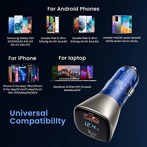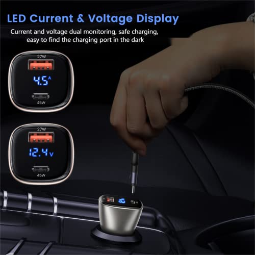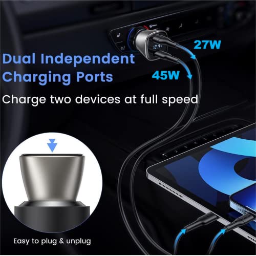 【Caricabatteria per auto a ricarica rapida da 72 W】: Caricabatterie per auto USB C da 72 W con due chip di controllo indipendenti supporta PD 45 W e 27 W QC 3.0, può caricare contemporaneamente laptop e telefono, porta di tipo c e porta USB Ricarica simultanea Non interferire con l'un l'altro, ricarica rapida senza caldo da diventare. Adatto per modelli 12-24V. NOTA: utilizzare un cavo di ricarica compatibile con il caricatore rapido.