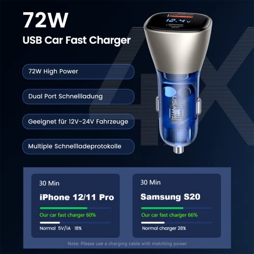 Caricabatteria Auto USB C, enablink 72 W Caricatore Auto Ricarica Rapida 2 porte Accendisigari USB Caricatore Adattatore Universale con voltmetro digitale per iPhone, Samsung, Huawei, Tablet, Laptop