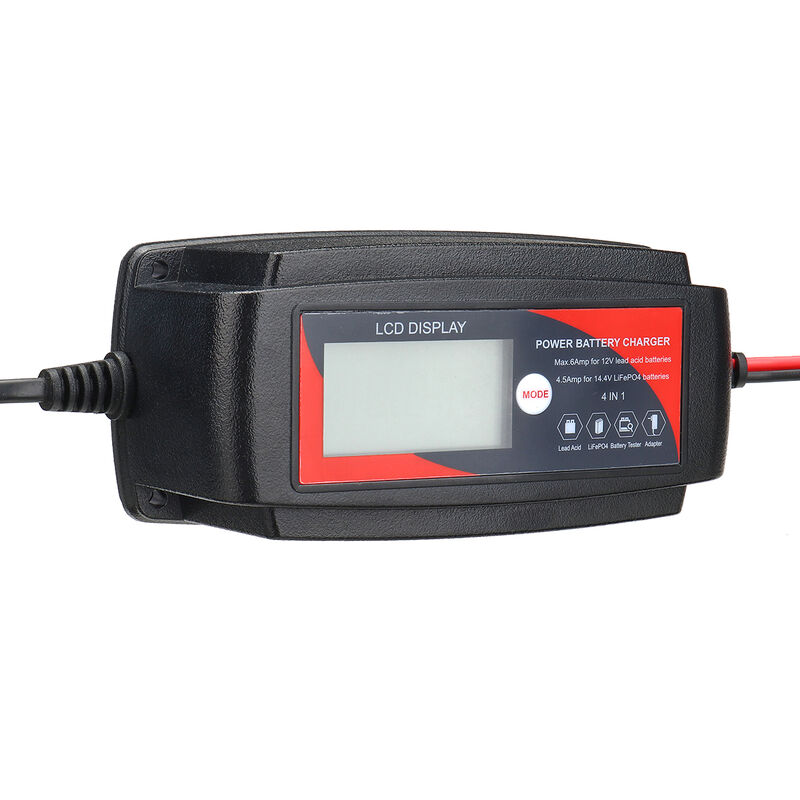 Nome: CaricabatteriaCaratteristicheModello: EPA1205LIngresso: commutazione automatica 100-240 V CA, 50-60 HzUscita: 13,8 V 6 A per piombo-acido batterie 14,4 V 4,5 A per batterie Lifepo4 12 V 6 A per adattatore CC 14,9 V 6 A per batteria AGM Per tester batteria 4 in 1, display LCD Livello di impermeabilità: IP65Ampia gamma di funzioni di ricarica● Funzione CHARGE per batterie di avviamento e alimentazione, applicabile a batterie al piombo e al litio (LiFePO4)batterie, utilizzando le ultime curve di carica:AGA (VRLA)& #9632;