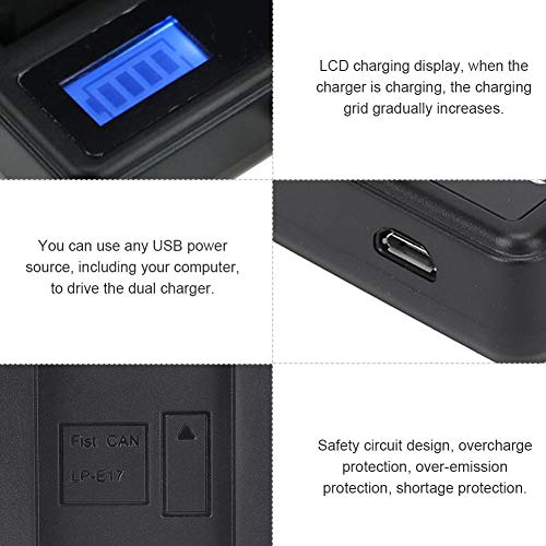 Caricabatteria LP-E17, USB Desktop Single Slot Smart 600mAh Stazione di ricarica della batteria della fotocamera con display LCD per Canon M3 M5 M6 760D 750D 800D 77D 200D LC-E17C Camera