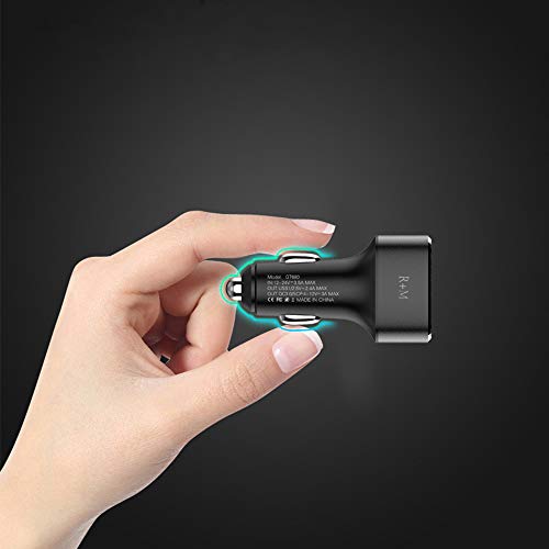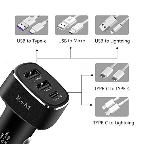R+M, caricabatteria da auto a ricarica rapida USB tipo C, 3 porte, 39 W, doppia porta USB e tipo C, con indicatore LED, per Android iPhone 8/Plus/X, tablet, MP3 purificatore d'aria e altro (nero)