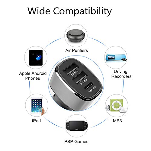 Ricarica rapida: 39 W/2,4 A, compatibile con Huawei 9 V2 A ricarica rapida, caricabatterie da auto a 3 porte può fornire contemporaneamente 2,4 A di corrente per ogni porta, tipo C 3A. consente a te e ai tuoi dispositivi di ricarica contemporaneamente senza sacrificare la velocità, riducendo il tempo di attesa per la ricarica.