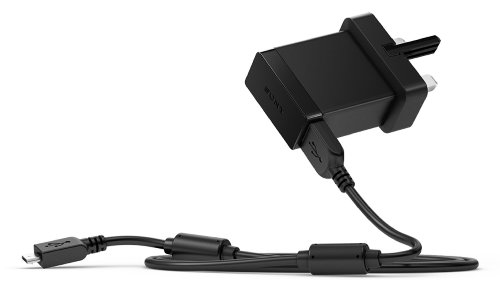 Sony - Caricabatteria universale portatile con presa britannica, con cavo Micro USB, per dispositivi cellulari e smartphone, colore: Nero