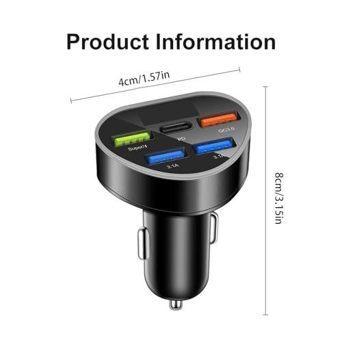 ℜDiversa compatibilità: il nostro caricabatterie per auto super veloce a 5 porte con display digitale garantisce un'esperienza di guida sicura e comoda. Fornisce una compatibilità versatile, consentendoti di connetterti a vari dispositivi tra cui smartphone, tablet e fotocamere. Il suo design multiporta consente la ricarica simultanea.