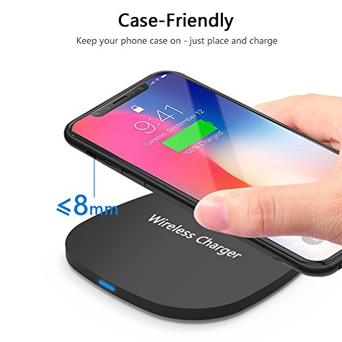Caricabatteria wireless, ricarica wireless Pad 10 W con gomma antiscivolo per iPhone x, iPhone 8/8 Plus, Samsung Galaxy Note 8/S8/S8 Plus, S7/S7 Edge e i dispositivi abilitati