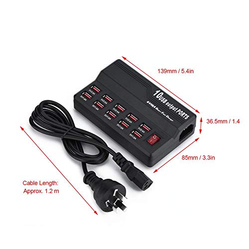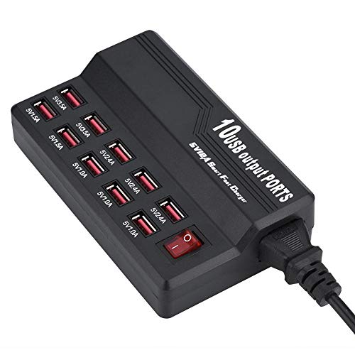 Caricabatterie USB 100-240V, 5V/12A 10 Interfaccia Caricabatterie da Viaggio USB Veloce Adattatore per Caricabatterie da Tavolo da 60W(Regolamenti europei)