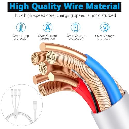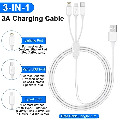 Cavo di ricarica multi USB 3 in 1: Il cavo di ricarica multi-USB dispone di 3 diverse porte di ricarica (Micro USB, Tipo C, Lighting) e di 1 cavo per le 3 esigenze di ricarica quotidiane. Con una corrente massima di 3A, la velocità di trasferimento della carica aumenta del 20% rispetto ai cavi tradizionali.