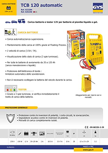 GYS - CARICABATTERIE TCB 120 AUTOMATICO - 12V - 023284