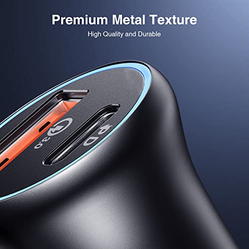 KKM Caricabatterie Auto USB, 38W PD & QC 3.0 Caricabatteria da Auto con Due Porte di Ricarica Rapida, Caricabatteria da Auto Veloce Compatibile con iPhone 14 Plus/14 Pro Max/13/12/11, Samsung S22 S20