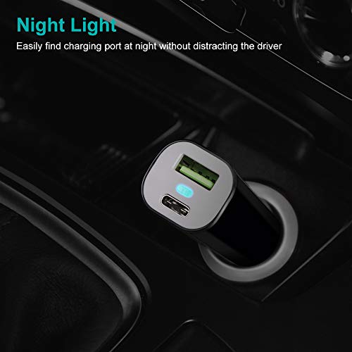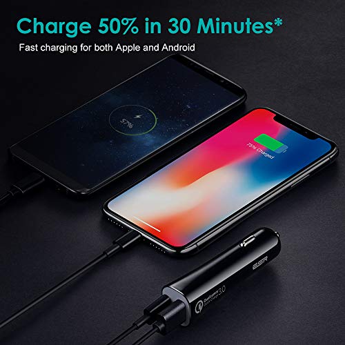 Progettato con Doppia Porta USB - Caricabatterie per auto ESR con due porte USB-C (Type-C) + USB-A (Type-A), carica simultaneamente 1 dispositivo compatibile con QC 3.0 e 1 dispositivo compatibile con PD.