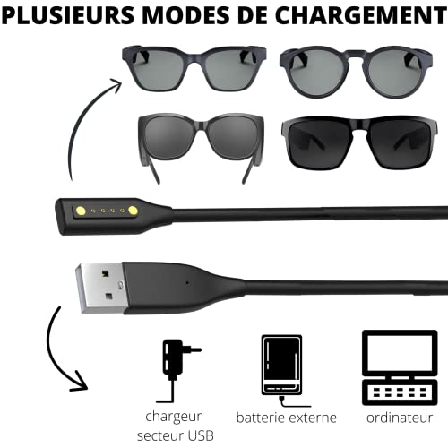 ✔️ PAC: Contiene 1 cavo nero con una lunghezza di 60 cm che consente la ricarica degli occhiali da sole audio (il caricabatterie non è incluso)