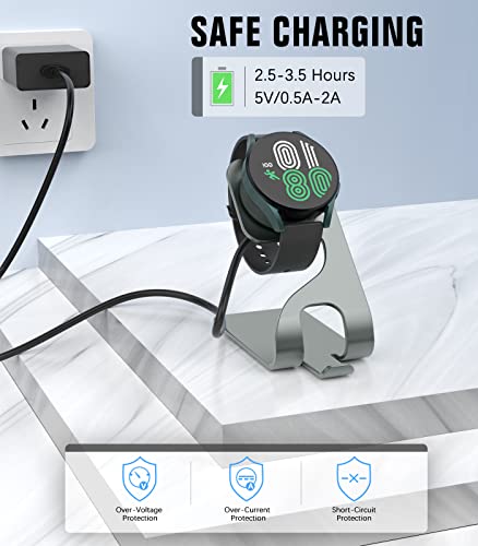 MoKo Caricabatterie compatibile con Samsung Galaxy Watch 4/4 Classic/Galaxy Watch 3/Galaxy Watch Active 1/2, stazione di ricarica magnetica con cavo USB 150 cm, supporto in lega di alluminio, grigio