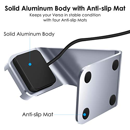 CAVN Caricabatterie Compatible con Fitbit Versa Caricabatterie, Ricarica Stand Dock Accessori Premium Alluminio Ricarica Dock Stand Cavo Stazione Culla con 4.2 ft Cavo di Ricarica per Versa