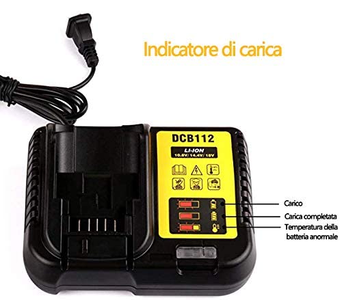 Questo caricabatterie compatibile con Per Dewalt 10,8 V 12V 14,4 V 18V DCB112 DCB200 DCB101 DCB140 DCB105 agli ioni di litio Batteria