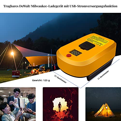 Per caricabatterie DeWalt 18 V 20 V per Milwaukee 18 V compatibile con batteria Milwaukee M18 e batteria DeWalt da 18 V, caricatore portatile con 2 porte USB per adattatore USB DeWalt per Milwaukee
