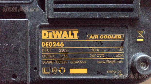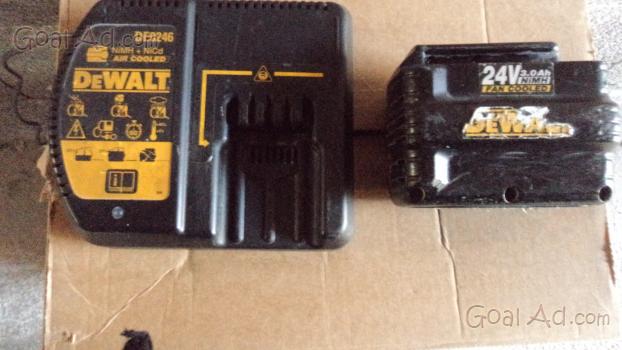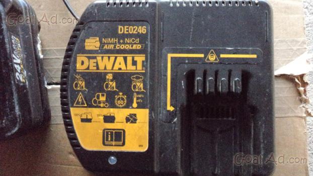 Caricabatteria Originale Ventilato marca DeWALT, modello DE0246 per batteria 24 volts, piu' batteria 24volts Originale DeWALT, USATI MA PERFETTAMENTE FUNZIONANTI, vendesi x inutilizzo causa rottura dell'utensile, caduto (con l'altra batteria in dotazione che aveva) da un altezza che ha reso l'utensile inutilizzabile a causa del duro impatto al suolo