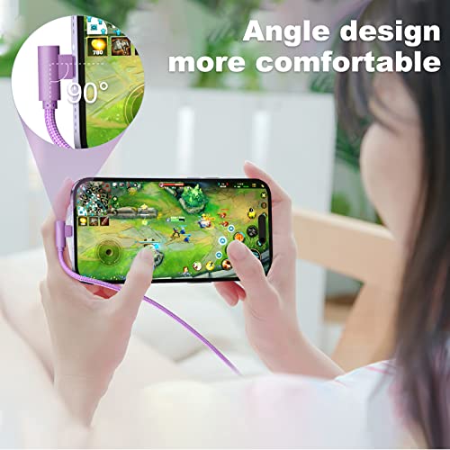 [Cavo di ricarica lungo per iPhone 1,8 m 3 pacchetti] - Una confezione include (1* viola 1* rosa 1* blu) 90 gradi cavo Lightning ad angolo retto 1,8 m nylon intrecciato pesante iphone carger per Apple