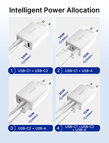 Caricabatterie USB C, JSAUX 40W 3-Port Caricatore USB-C con Doppia Porta PD 20W USB-C e Porte USB-A QC 3.0 18W per iPhone 14/13/12/11 Pro Max, iPad Pro, Samsung S22/S21/S20/A73/A53/A33 e Pixel 6