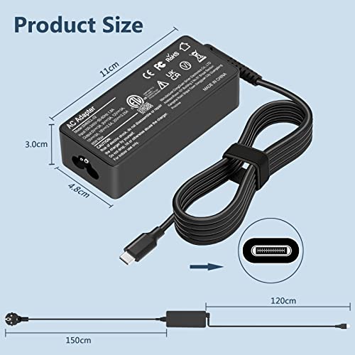 Caricabatterie USB tipo C da 65 W e 45 W per Lenovo Thinkpad Yoga, HP Chromebook Spectre, DELL XPS Latitude, Acer Chromebook, Samsung Chromebook Adattatore per portatile
