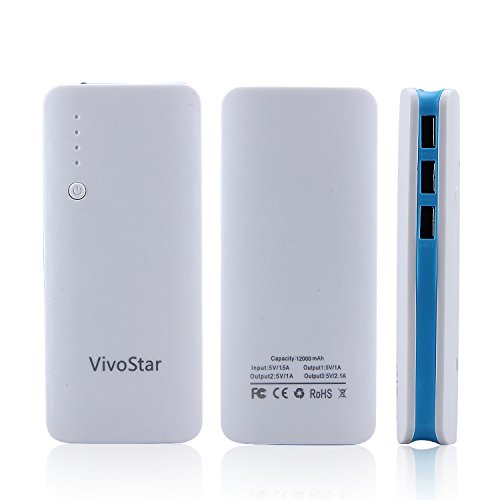 Caricabatterie Portatile 12000mAh, VivoStar Batteria Esterna con 3 Porte USB, Power Bank per iPhone7, iPad, Samsung S8, Huawei, Nexus, HTC e altri smartphone, Tablet (Rosso)