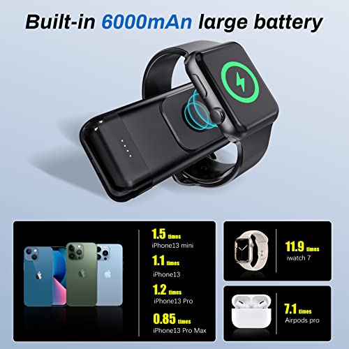 Caricabatterie Portatile per Apple Watch e iPhone, 6000mAh per Apple Watch Caricabatterie con cavo di ricarica integrato, Caricabatteria da viaggio per iWatch 8/7/6/SE/5/4/3, i Phone 14 Pro Max/13/12