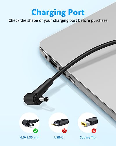 【Attenzione】questo caricabatterie ha una dimensione del connettore: 4,0mm*1,35mm (NOTA: ▲Scegliere la stessa interfaccia dell'alimentatore). Si prega di controllare il modello esatto del vostro adattatore originale e il vostro computer portatile prima di ordinare!