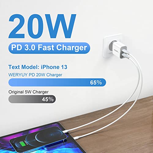 【Caricabatterie rapido PD 3.0 da 20 W】 Questo caricabatterie rapido USB-C da 20 W dotato di tecnologia Power Delivery 3.0, appositamente progettato per una ricarica rapida, una ricarica tre volte più veloce rispetto ai normali caricabatterie originali e può caricare i-Phone 13 dallo 0% al 50% in 30 minuti